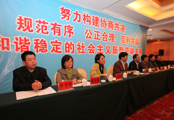 随后,省总领导参加了我区工资集体协商集中签约仪式,对我区130家重点企业集中签约的做法给予了充分肯定,他指出:桥西区在开展工资集体协商,构建和谐劳动关系方面,创新工作方式,采取措施得力,值得肯定。同时要求参加签约的企业要认真履约,形成制度,总结经验,为构建和谐劳动关系作出更大的贡献!