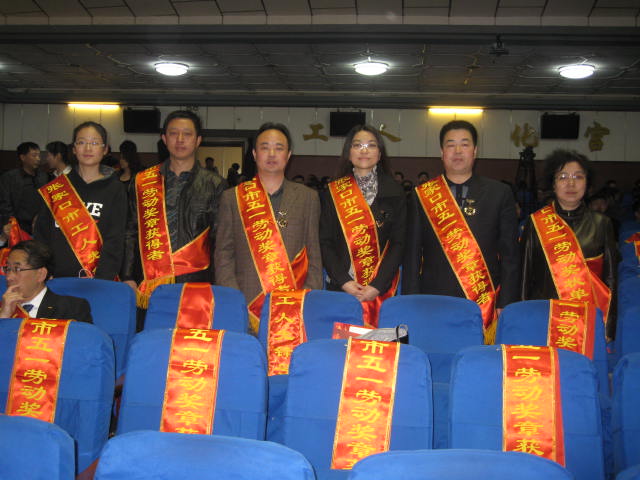 4月29日上午市总工会在工人文化宫隆重表彰2011年市五一劳动奖状、五一劳动奖章、工人先锋号获奖单位及个人。我区帝达集团有限公司荣获市五一劳动奖状称号;工人新村办事处南新村社区荣获市工人先锋号称号;斯必克冷却技术(张家口)有限公司一线职工张宏生、区属第九中学教师刘永飞,双语幼儿园教师何晓芳、恒峰热力有限公司董事长张贵川、区人大副主任、总工会主席李贵平5名同志获得市五一劳动奖章。(文、图:陈大伟)
