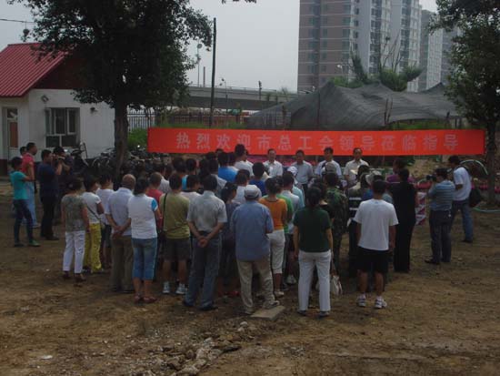 7月19日,市总工会党组副书记、工会副主席闫奋生,市私营企业工会联合会工会主席周继文,市总工会法律保障部部长、帮扶中心主任马轩在区委常委张佃山、区总工会副主席刘进海的陪同下来到桥西区绿化处对在酷热中辛勤劳动的一线绿化工人进行慰问,并带来了白糖、茶叶、矿泉水以及防暑药品等慰问品。