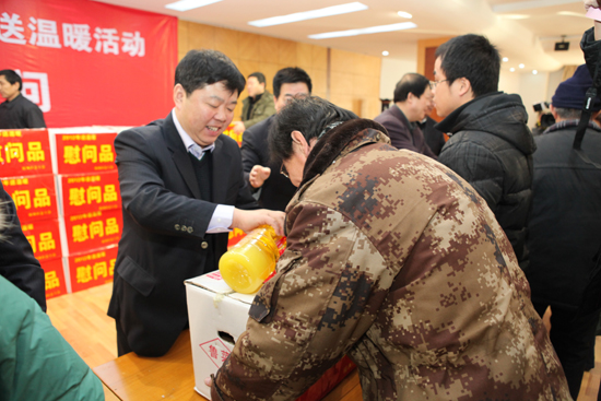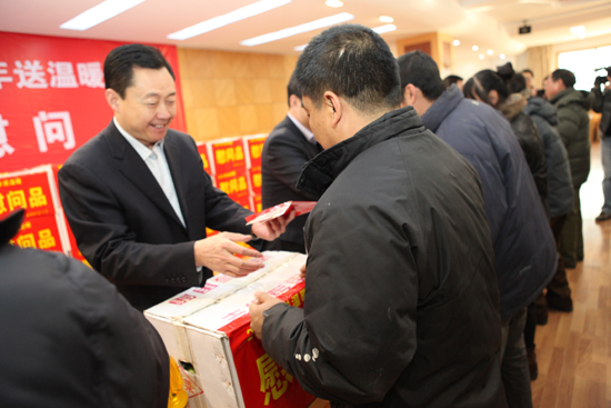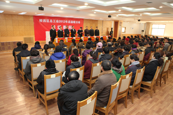 12月26日上午,区工会2012年“两节”送温暖慰问活动在区二楼会议室拉开帷幕。区委书记陈晓明、区长王亚军、区委副书记汪天忠、区人大主任李忠、区政协主席王建平、区委常委政府副区长宋乃忠、区委办主任张照平、区人大副主任李贵平出席并亲自为困难职工和患大病职工发放慰问金、慰问品和医疗互助金。这次现场慰问180户职工全部为特困职工,有劳动模范,有患大病职工,有单亲女职工,每人拿到救助金300元,救助金每人比去年增加100元,还有价值300元的慰问品一份,包括 ①猪肉5斤②白条鸡2只 ③食用油1桶④8种蔬菜。现场慰问患大病职工8户,共发放慰问金和救助金3.596万元。