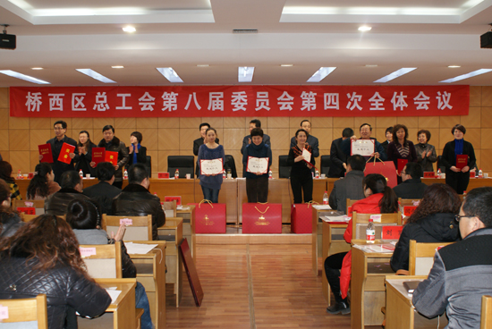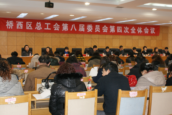 2月23日上午,桥西区总工会在区政府二楼会议室召开第八届委员会第四次全体会议。区总工会第八届委员会委员、拟替增补委员、八届经审委员会委员、直属工会主席、镇街工会专干、区总机关干部及受表彰的村社区工会主席100余人参加了会议。区人大副主任、区总工会主席李贵平主持了会议,市总工会朱立新主席、区委汪天忠副书记出席会议并讲话。