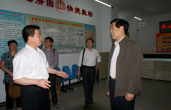 省总检查组领导一行听取了区人大副主任、总工会主席李贵平就我区工会工作所作的汇报,观看了区总工会制作的专题片,查看了区总工会各种工作资料后,深入到我区动力机械厂工会、内蒙驻张医药公司工会、西山底社区工会进行了实地察看。