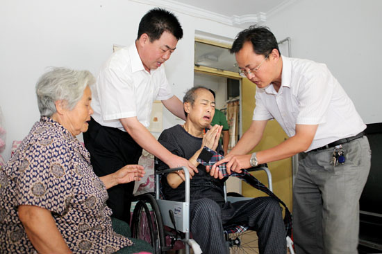 张家口市桥西区总工会在深入开展“爱之源·面对面心贴心实打实服务基层”走访困难职工家庭活动中,特困职工孙彦斌因糖尿病并发综合症导致尿毒症和双目失明,每星期需到医院透析4次,行动不便特向区总工会申请轮椅。区人大副主任、区总工会主席李贵平了解到,孙彦斌是汽车配件二厂下岗职工,家庭平均收入318元,妻子病退,孩子正在读大学,家中无房和八十岁老母亲同住。因病每年花费医药费7.5万元,需自付药费2.5万元,生活困难。李主席几次和区残联协调联系,为他争取到一台轮椅,并送到家中,极大地减轻了孙彦斌家庭负担,让他感受到了党政温暖,领导关怀。使帮扶救助困难职工工作实现了一对一的人性化服务,创新了帮扶理念,提升了帮扶质量,扩展了帮扶内涵。