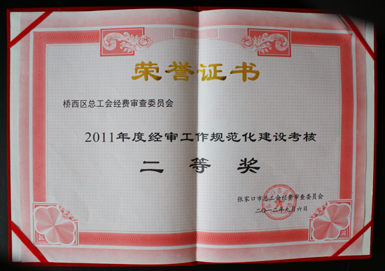9月6日,在全市工会2012年经审工作会议上,桥西区总工会经审工作被授予规范化建设二等奖。同时,在全市工会系统经审工作台账展评中,桥西区总工会荣获“优胜单位”称号。(张春燕)