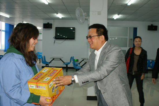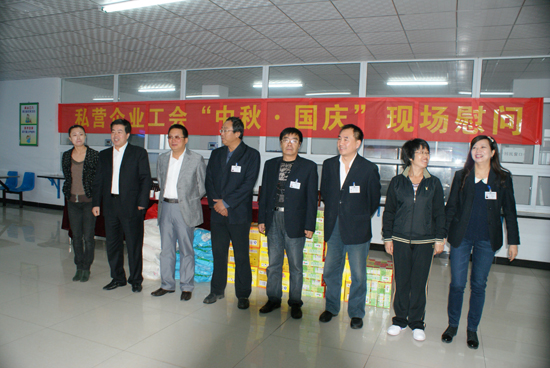 慰问活动中,私营企业工会联合会主席周继文为在场的困难职工送上节日的祝福。区人大副主任、区总工会主席李贵平强调,在经济形势异常严峻的2012年,通用机械有限责任公司能够顶住压力实现稳步发展,离不开广大职工的努力,希望大家再接再厉,实现新突破。随后,领导们为困难职工送出了米、面、八宝粥、饮料等价值3000余元的慰问品。受助困难职工对私营企业工会及桥西区总工会领导的关心与慰问表示由衷的感谢。职工们激动地说:“在双节到来之际,我们困难职工收获的不仅仅是慰问品,更收获了党和政府对我们的关心与爱护。”(张春燕张辰)