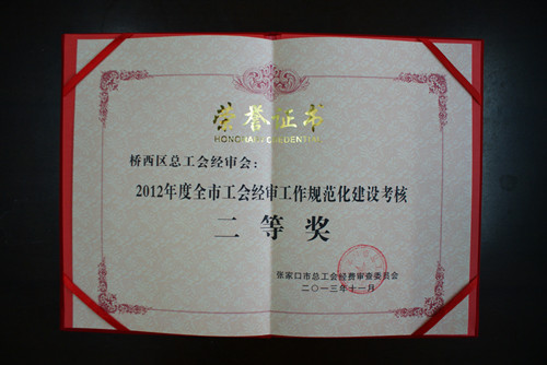 近日,在全市工会2013年经审工作会议上,桥西区总工会荣获工会系统经审工作台账展评中一等奖。同时,在经审工作规范化建设考核中,桥西区总工会被授予规范化建设二等奖。(张春燕)