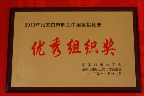 桥西区总工会荣获张家口市职工中国象棋比赛“优秀组织奖”