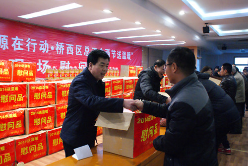 早在2013年11月区委王亚军书记、区政府汪天忠区长就要求区总工会积极争取和筹集资金物质,切实做好困难职工节日慰问工作,让困难职工真切感受到党的温暖、政府的关怀,让困难职工过一个快乐、祥和的春节。经过努力,区总工会共争取筹集到资金物质139万余元,从六个方面进行了安排,救助桥西区1925名困难、特困职工,实现对登记在册特困职工和困难职工的慰问救助全覆盖。