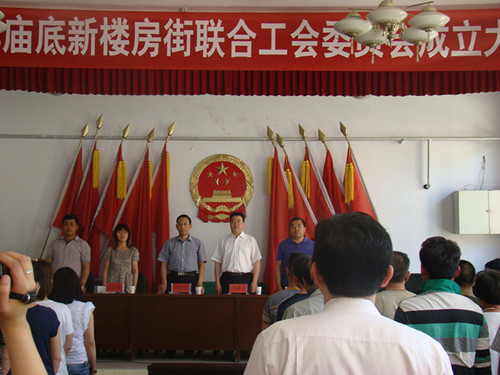 庙底新楼房街共有商户70家,职工120人,为了稳定辖区企业劳动关系,维护职工的合法权益,充分调动职工的积极性,增强庙底新楼房街凝聚力,最广泛地把辖区不能独立建会的小型、分散单位的职工组织到工会组织中来。经区总工会决定成立东窑子镇庙底新楼房街联合工会委员会,镇总工会工作人员经过调查摸底、动员宣传,成立了筹建工作组,明确了专人负责,将120名职工全部录入为会员,并在会员中选出了37名会员代表,于529日召开东窑子镇庙底新楼房街联合工会委员会成立大会,会上选举出了第一届工会委员会委员3名、经费审查委员会委员3名,并选出工会主席、经费审查委员会主任。市总闫奋生主席和区总李贵平主席共同为新当选庙底新楼房街联合工会主席陈瑞明授了牌。