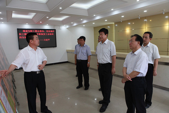 8月4日下午,由省人大党组副书记、省总工会主席王增力带队的省总工会调研组一行6人到我区调研指导工会工作。市委常委、组织部长、市总工会主席魏福刚,市总工会党组书记、常务副主席闫奋生及区委书记王亚军,区委副书记王芳,区委常委、区委办主任张贵川,区人大副主任、区总工会李贵平主席陪同调研。