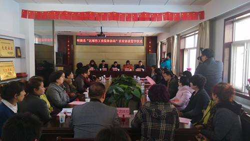 201549日上午,明德北街总工会在蒙古营社区举行区域性工资集体协商签约仪式,区总工会副主席白树萍、区工资集体协商指导员白海燕、街党工委副书记、工会主席赵明春、常务副主席李莉华出席此次大会。街工资集体协商领导小组成员、各社区工会主席和工会干部,13家企业和职工代表共计50余人参加了签字仪式。
