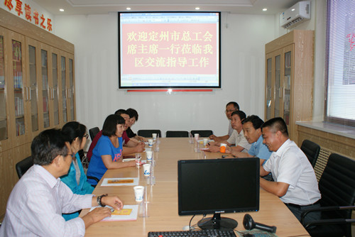 717日,定州市政协副主席、总工会主席席国旗等一行5人到我区职工服务中心交流学习。