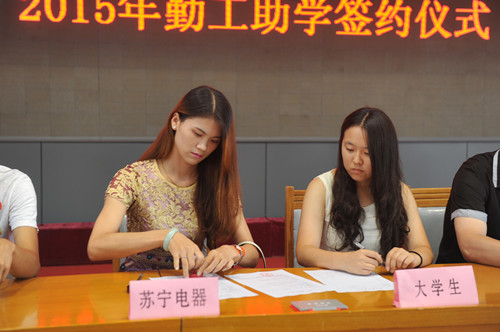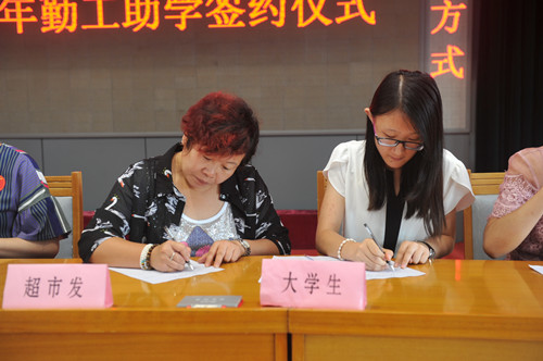 自7月份以来,桥西区工会通过广泛宣传,不断拓宽助学渠道,加大了助学力度,得到了区直单位、民营企业家、劳动模范、个体业主等社会各届爱心人士广泛关注和大力支持,再次实现了助学岗位、勤工助学工资的新突破。越来越多的单位参与到我们“勤工助学”事业中来,促成了“勤工助学”的社会化,形成社会助学的蔚然风气! 2015年勤工助学活动,报名学生202人,共有109家机关企业事业单位提供174个岗位,包括办公文员、酒店服务员、超市促销员、医院护理、销售员、机械加工等50个工种。今天有163名大学生现场与企业签订假期勤工合同,明天一早,学生们就各自奔赴工作岗位,开始了为期一个月的勤工助学实践。