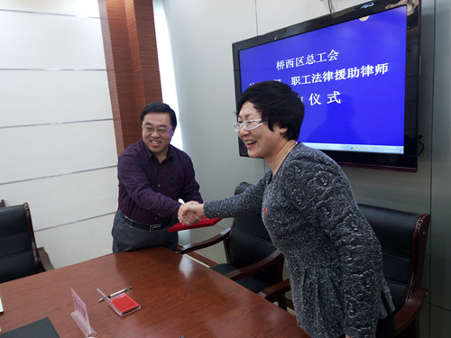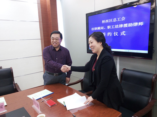 12月26日下午,“桥西区总工会聘请工会法律顾问、职工法律顾问签约仪式”在区总工会举行。市总工会副主席高海林、市总法保部部长张锴、区人大常委会副主任、区总工会主席李贵平、区司法局局长路明进、区总工会常务副主席宁永丽等相关负责人和法律顾问成员出席了会议。会上,明德法律服务所刘尚礼律师被聘请为桥西区总工会法律顾问。方正法律服务所岳成元律师、华源法律服务所田松渊被聘请为桥西职工法律援助顾问,会上桥西区总会常务副主席宁永丽代表区总工会分别与受聘律师现场签约,市总工会副主席高海林、区人大常委会副主任、区总工会主席李贵平等为其颁发了聘书这标志着桥西区基层工会法律顾问制度正式进入实施阶段。这是桥西区工会社会化维权机制和推动建立和谐稳定的社会主义新型劳动关系的重要举措。