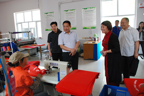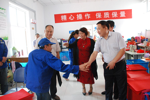 6月13日上午,市总工会副主席李国民、法保部长张锴陪同省总创业办宋铁栋副主任一行到我区对省总创业就业扶持项目——阳光创业工坊进行调研工作指导。区人大副主任、总工会主席李贵平全程陪同。先后参观了无纺布生产车间了解生产工艺及各个生产环节,询问了职工“日生产”情况。同时参观了残疾职工手工插花、麦秸画、皮画等手工艺品的制作程序和作品。阳光创业工坊负责人介绍了阳光创业工坊筹建经历及职工现状。随后进行了深入座谈交流。