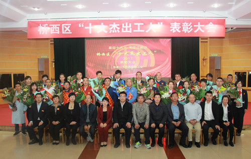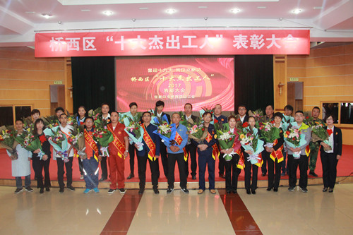 2017年9月29日,各行业职工优秀代表欢聚“喜迎十九大 岗位立新功”桥西区“十大杰出工人”表彰大会现场,区总工会对10名荣获“十大杰出工人称号”和15名获得提名奖的优秀职工进行隆重表彰。市总领导、区四套班子领导、评审会成员、企业负责人作为特邀嘉宾出席大会并颁奖。基层工会主席、常务副主席、工会专干和工人共计200人参会。