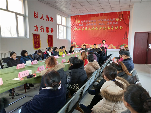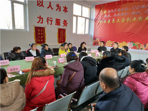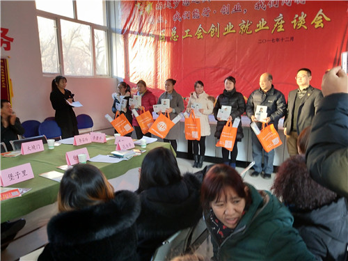 2017年12月15日下午,桥西区总工会在东窑子镇阳光创业工坊召开创业就业座谈会,参加座谈会的有区人大副主任、区总工会主席李贵平,区总工会全体人员,区属基层工会的常务主席和专干,参加技能培训的困难职工,创业成功人士共计60人。