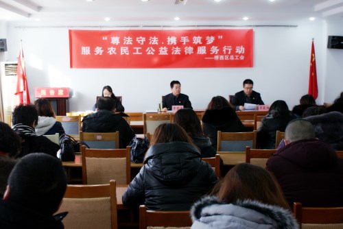 近日桥西区总工会按照省、市总工会工作按排“尊法守法. 携手筑梦” 服务农民工公益法律服务行动拉开序幕。