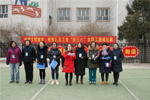 三八国际劳动妇女节来临之际,为进一步丰富女职工的业余文化生活,展现女职工健康向上的精神风貌,推进全民健身运动的普及和开展,同时为营造创建全国文明城市的良好氛围,桥西区总工会举办了创建文明城市·“庆三八”女职工跳绳比赛。