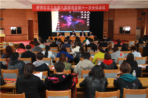 2018年4月11日上午,桥西区总工会在区委办公中心七楼会议室召开第八届委员会第十一次全体会议。区总工会第八届委员会委员、经费审查委员会委员,各镇街、机关事业单位、直属企业工会主席、常务副主席、工会专干和区总机关干部共计80余人参加本次会议。会议由区人大副主任、区总工会主席李贵平主持。