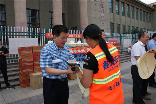 7月4日下午,区委书记张照平同志带领桥西区四套班子领导,前往三个会场慰问战斗在全国文明城市创建工作第一线的环卫职工们。区领导对环卫职工 “宁愿一人脏,换来万家净”的环卫精神表示高度肯定,对环卫职工不畏寒暑、甘于奉献,在最脏、最苦、最累的岗位上付出的辛勤劳动致以诚挚慰问,并送去了矿泉水、方便面、草帽、水杯、毛巾等价值4万元的慰问品;同时要求全区各级各部门要站在“以人为本、促进和谐、安全生产”的高度,把防暑降温工作作为夏季重点工作来抓,通过“夏送清凉”等关爱特别行动,切实关心职工身体健康和劳动安全,把防暑降温工作和劳动安全保障措施落实到每个企业、每个班组、每个高温岗位和每一名职工,杜绝安全事故的发生,保证生产和安全两不误,确保工人们平安度夏。