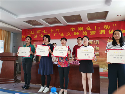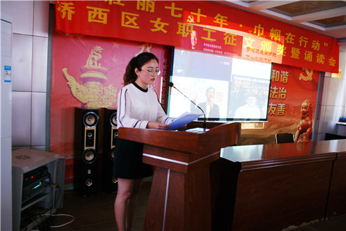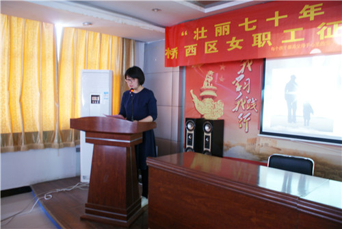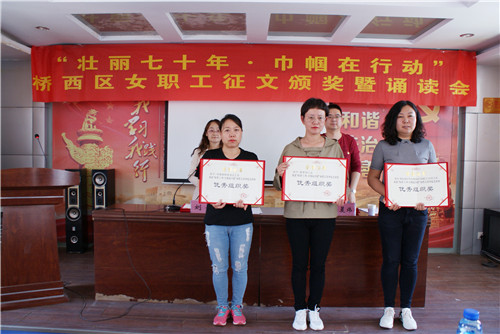 5月28日下午,桥西区总工会在教场坡社区会议室举办“壮丽70年•巾帼在行动”女职工读书征文颁奖暨诵读会。全区各镇街工会、直属工会女工干部、女职工代表、获奖作者共计80余人参加活动。