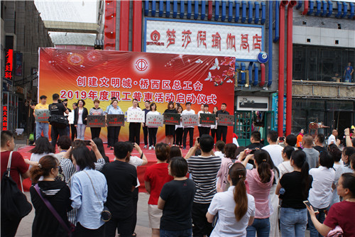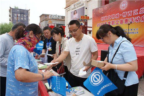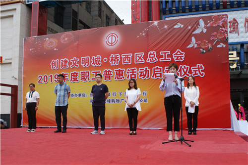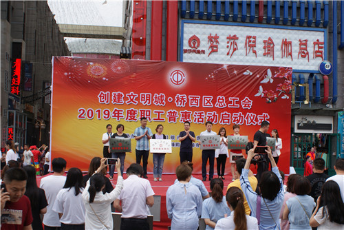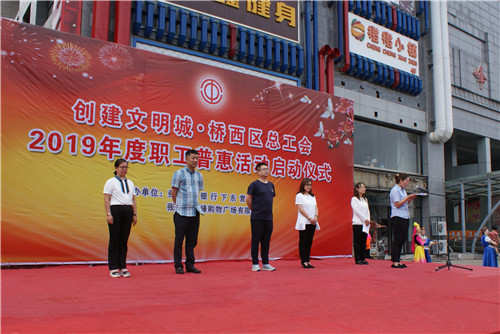 为不断提高服务职工的能力和水平,激发广大职工群众积极投身文明城市创建活动,6月13日上午,桥西区总工会在尚峰新城广场举行创建文明城·2019年度职工普惠活动启动仪式。各镇街总工会、直属工会主席、职工代表、普惠特约服务商家代表共计100余人参加活动。