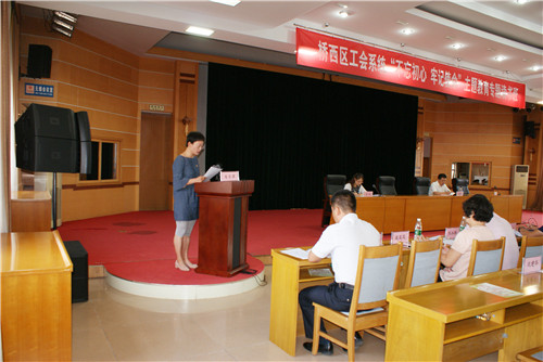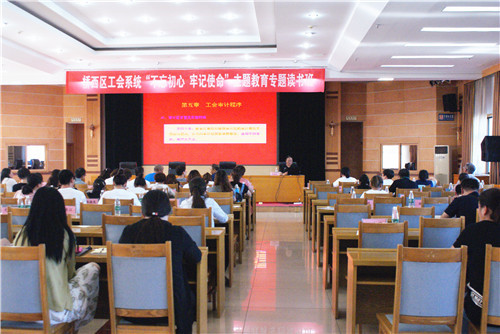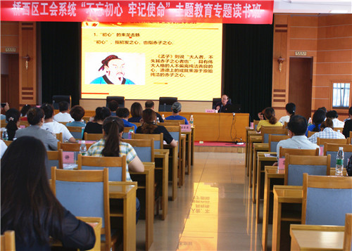 8月22日至23日,桥西区总工会举办工会系统“不忘初心、牢记使命”主题教育专题读书班,桥西区人大常委会副主任、总工会主席李贵平、区委组织部副部长、区总工会兼职副主席于江和区总工会副主席郝喜梅出席开班仪式,区总工会主任科员刘芳主持开班仪式,区属机关企事业单位120余名工会干部参加读书班。本次读书班旨贯彻落实中央、省、市、区委关于开展“不忘初心、牢记使命”主题教育的部署要求,通过集中学习深化对党的初心和使命的认识,把握工会工作的正确政治方向,加强我区工会干部队伍建设,切实提升工会干部的政治理论水平和工会业务能力水平,通过学习武装头脑、指导实践、推动工作,在服务党政工作大局、服务职工群众、建设美丽桥西新征程中,不忘初心,奋勇前进。