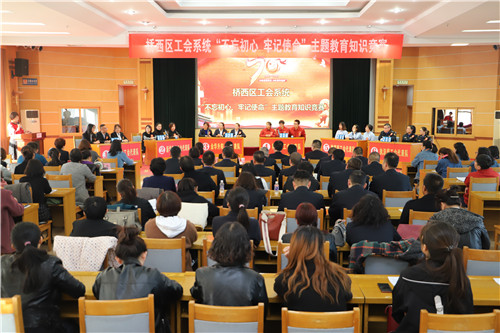10月30日下午,桥西区总工会在区机关办公中心七楼会议室举办桥西区工会系统“不忘初心、牢记使命”主题教育知识竞赛。区人大副主任、区总工会主席李贵平出席活动并为获奖代表队颁奖,全区各镇街总工会、直属工会和机关工会的干部和职工代表150余人参加活动。