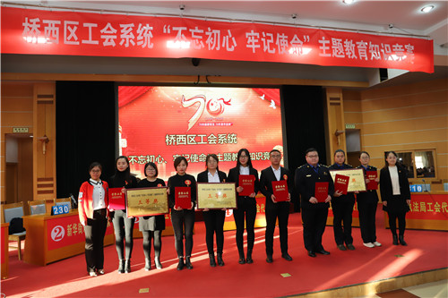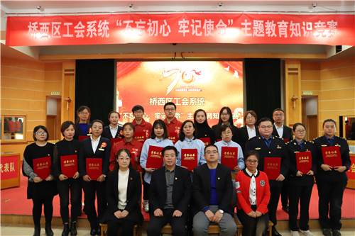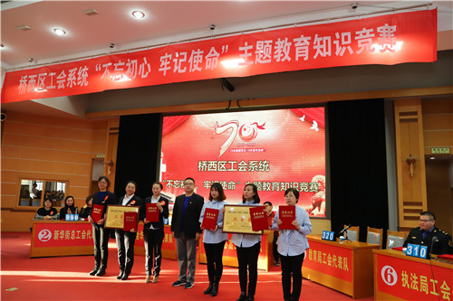 此次知识竞赛活动,为我区干部职工搭建了学习交流平台,展现了工会干部职工良好的思想政治素质和精神风貌,营造了浓厚的“不忘初心、牢记使命”主题教育学习氛围,激励全区广大干部职工加强学习,提高自身修养,立足本职、爱岗敬业,进一步凝聚正能量、提升精气神、增强战斗力,努力为推动桥西区新时代发展贡献智慧和力量!