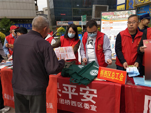 区总工会志愿者在活动现场,通过设置宣传展板,发放宣传资料,设立咨询台等方式,向辖区职工群众进行防灾减灾知识宣传,热情解答群众咨询,桥西总工会共发放宣传资料300余份。