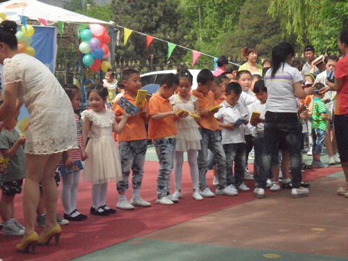 本次活动向在珠算、英语比赛中获奖宝宝的颁发奖状,充分肯定了在培养孩子健康、活泼、聪明、自信等个性品质中所取得的成果;大华幼儿园的园长杨巨萍还向辖区内家庭生活困难的孩子们送上了书包、笔袋等学习用品,并合影留念。