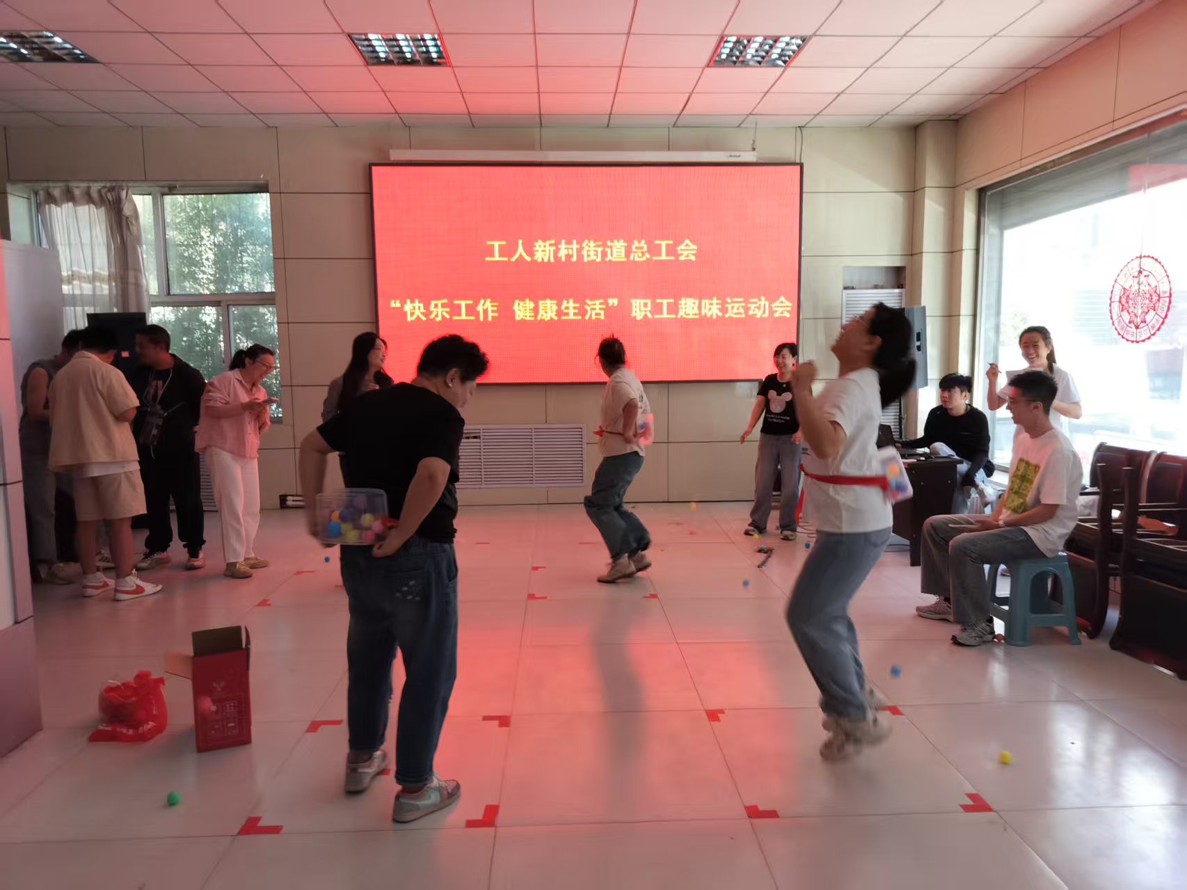 2025年6月17日上午在南新村社区活动室举办工人新村街道总工会“快乐工作 健康生活”职工趣味运动会,为丰富职工文化生活,营造积极向上、激发职工工作积极性和热情。首先由街道工会主席王燕艳为大家这讲解活动规则,然后宣布趣味活动开始“抖乒乓球”、“摸石过河”、“花样投篮”等活动,参赛选手们的超水平发挥让大家笑得前仰后合、掌声和欢呼声一浪高过一浪,给大家带来了一波又一波的欢声笑语。在满足大家味蕾的同时,缓解了工作压力,放松身心,锻炼身体,增加了同事之间互相了解,增强了默契感,增进了同事之间的友谊。