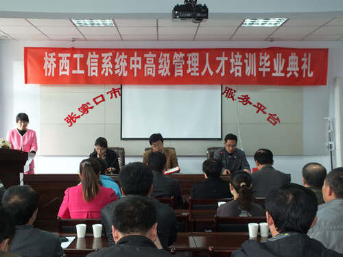 为进一步提升桥西工业企业中高层管理人员综合素质,进一步解放思想,创新思维,推动桥西经济跨越发展,桥西区工业和信息化局工会联合张家口市中小企业服务中心在原张家口市第十九中学中心会议室举办“桥西区工业企业中高级管理人才培训班”。从2013年6月22日起,历时三个月,举办了8期企业中高层管理人员管理能力提升培训班。