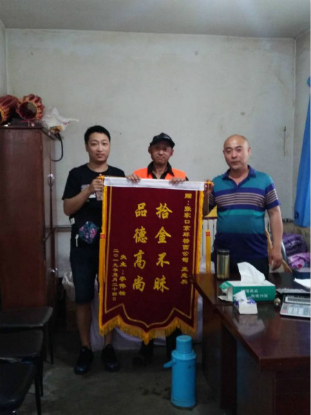 “拾金不昧如今不算啥新闻,但当自己亲身经历时,还是特别感动,真心谢谢王师傅。”拿回财物的失主李先生感慨地说,“王师傅这种拾金不昧的精神,传递我们满满的正能量”,事后李先生特意拿着一面写有“拾金不昧品德高尚”的锦旗送到京环桥西公司王志兵同志手中,由衷地向环卫工人王师傅表达自己最诚挚的谢意!