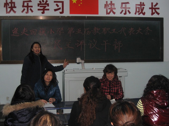 2011年12月16日下午16:30,逸夫回族小学召开了第五届教代会。会议在高亢的国歌声中拉开帷幕。工会主席王艳丽主持会议。会上主要听取了学校领导从德、能、勤、绩、廉五个方面作的述职报告,随后全体教师分小组依照公平、公正的原则对四位领导进行了民主评议。同时在民主评议会上又征集了2012年逸夫小学合理化建议,随后又向全体教师公示了工会2007-2011年以来经费的收入和支出情况。