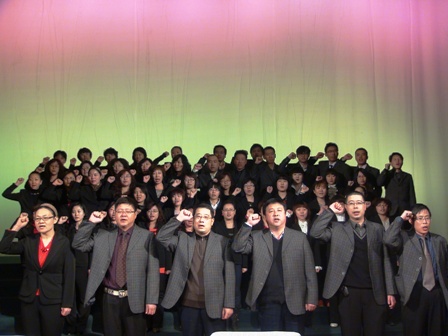 2012年2月25日,我校在工人文化宫召开2011-2012年第二学期开学典礼。会上,校领导对优秀班集体及优秀个人进行了表彰。为增强新学期教师们的责任心和使命感,在于校长的带领下,全体教师举起右手,面对全体学生庄严宣誓:我是光荣的人民教师......教师的誓言铿锵有力,充分展示了教师爱岗敬业、勇于奉献的精神面貌。 (李广华)
