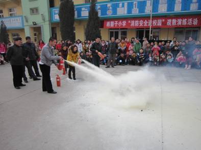 为了认真贯彻上级有关做好学校安全和管理工作的指示精神,落实学校重大安全事故应急救援预案的有关要求,开展学校消防安全活动,加强安全事故的防范,保障学校和师生的安全,维护校园稳定及加强学校重大安全事故的应对能力。西豁子小学工会、少先队于2012年2月29日联合开展了“消防安全进校园”师生疏散演练活动,活动中聘请了市消防队防火处宣传科徐雷云参谋为我校的法制安全校外辅导员,徐参谋为广大师生讲解消防安全常识及防火紧急疏散演练的注意事项。讲座后,学生进行了消防安全疏散演练,对青年教师进行了消防灭火器械使用的培训及现场演习指导。