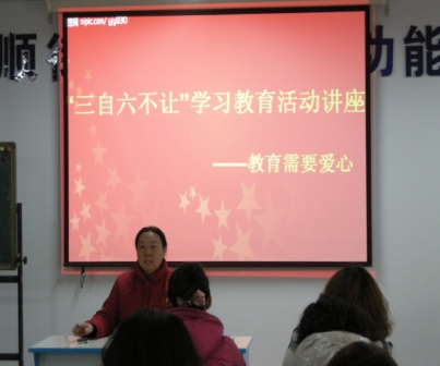 继“三自六不让”活动和“创先争优加强基层组织建设年”活动动员会后,通顺街回民小学从抓班子带队伍入手,近日工会与党支部联合组织全体教师利用理论学习时间,收看当代著名教育家、教育哲学博士李镇西教授的《教育、从爱心走向民主》录像讲座,通过收看专家讲座,树立爱岗敬业,奋发向上的良好教师形象,全体教师决心要作到“自身正、自身净、自身硬”。