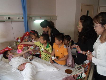 近日,桥西区幼儿园工会、妇联,行政等在张艳平园长带领下来到二五一医院看望在家中不慎烫伤的大四班小朋友,班内小朋友用他们灵巧的小手折了千纸鹤、用彩纸编制了红心、制作了仙女棒及六一贺卡。孩子们一句句祝福的话语,表达了他们对受伤幼儿的关心和慰问,幼儿园还为她带去了慰问品(价值200元),祝她早日康复,健康成长。