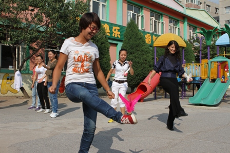 在教师节来临之际,桥西区双语幼儿园工会组织全体教工进行了踢毽比赛,不仅锻炼了教工的身体,同时也愉悦了教工的生活,使她们度过了快乐的一天。