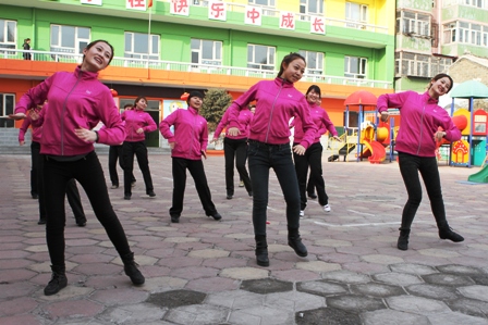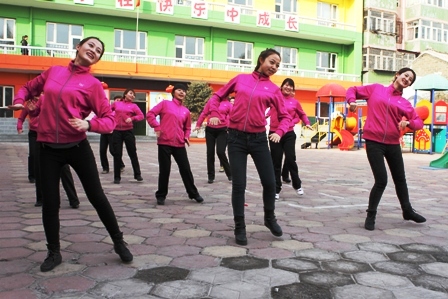 桥西区幼儿园工会十分注重开展教师的业余文化生活,定期组织开展多种形式的活动如:教师爬山比赛、教工卡拉OK大奖赛、健身操等活动,使教师们能以愉快的心情、健康的身体投入到幼教工作当中。图为“三八”节前夕,幼儿园工会组织教师开展校园健美舞(文体活动竞赛)比赛。