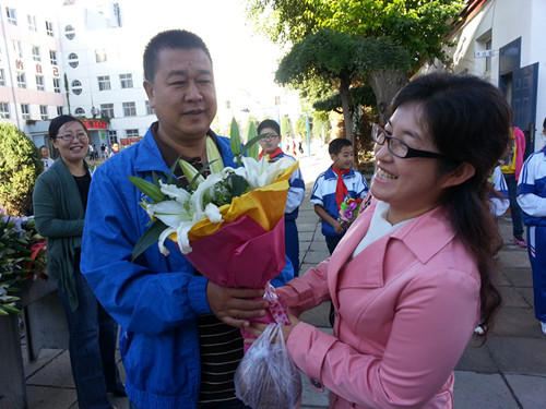 金秋九月,北新村小学迎来了教师自己的节日—教师节。九月十日早晨,学校的领导班子成员及工会主席早早到校,校门口摆满了束束新鲜的百合,每位到校的老师都会受到校领导最真诚的节日的问候,并送上芳香的百合花,老师们手捧鲜花,各个脸上洋溢着笑容,深深感受到学校给老师们带来的温馨和祝福。青年老师纷纷在微博,微信上向家人朋友传送着这份喜悦,心情格外美好。愿这份美好的祝福永远伴随着北小人在教师岗位上努力工作,奋勇向前。