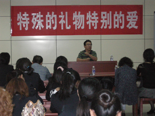 9月9日下午,在第29个教师节来临之际,通顺街回民小学工会以“特的礼物 特别的爱”为主题的教师节庆祝活动在学校多媒体教室举行。贯穿整个活动始终的是特殊礼物的放送:校长赠书——励志书籍鼓干劲;聘请北新村小学市十大杰出青年,市骨干教师曹淑华老师为全体教师作《用爱与智慧赢得幸福》讲座——名师引领提水平;千纸鹤放飞的“知心贴”——做好工作慰家长。活动在温馨、祥和的氛围中把我校“愿做有情有爱的教育者”师德建设活动推向深入,为教师专业化成长献上特别的爱。