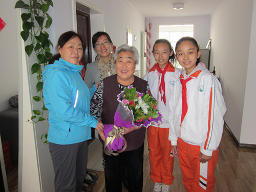 10月13日,是我国每年的重阳节,为了体现学校党委及工会对老教师的关爱,培育学生的社会责任心和敬老、孝敬、爱老、助老的优秀品质,弘扬中华民族“爱老敬老”的传统美德,长青路小学党支部、工会及少先队联合慰问了退休老教师,为退休教师送去了鲜花和食品,问候了老教师的日常生活,并且帮助老教师做了一些力所能及的家务劳动。此次活动对老人和孩子们的触动都很大,用爱心、热心温暖这些老人,为老人们送去我们一点点心意。