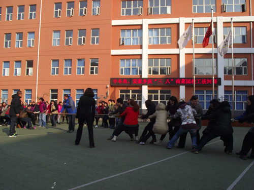 3月6日,南菜园小学工会举办了--- 申冬奥、爱家乡、庆“三八”为主题的教工拔河赛。裁判员一声令下,选手们都奋力拼搏、团结一心、倾尽所能、互不相让,随着学生们此起彼伏、震耳欲聋的加油声,拔河比赛进行的紧张有序、气氛高涨。此次活动为即将到来的“三八”节增添了喜庆气氛,丰富了教职工的精神生活,强健了体魄,增强了凝聚力,展现了南菜园小学全体教职工,爱我家乡,助力申奥,蓬勃向上的巾帼风采和勇于争先的精神面貌。