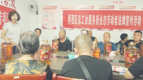 活动现场,桥西区总工会工作人员为新业态劳动者发放《劳动法》《保障农民工工资支付条例》、《职工权益法律指南法律宣传资料300余份,解答法律咨询10余人次这些资料内容丰富、图文并茂,便于他们随时查阅和学习。同时,工作人员还鼓励他们在遇到法律问题时,及时拨打法律援助热线或向工会组织寻求帮助。