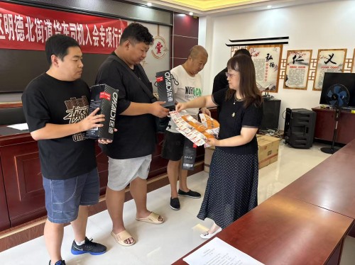 明德南街街道总工会8月8日在“货车司机行业工会联合会集中入会”活动中,由街道党工委副书记、总工会主席带队,详细介绍工会法律援助、困难帮扶、医疗互助、普惠服务(加油充电优惠)等项目,并现场答疑解惑,发放花生油等“暖心慰问礼品”,传递组织关怀。