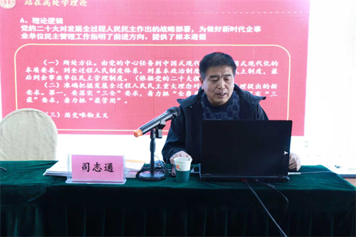 本次培训以《怎样做好新时代企事业单位民主管理工作》为主题,司志通教授从站在高处学理论、围绕所需学知识、事争一流学方法三个部分进行授课,从时势背景、理论基础、政策知识、实操能力、典型案例及发展前瞻等多个维度进行了系统而深入的讲解。培训内容主题鲜明、深入浅出,既有对宏观政策的精准解读,也有对微观实践的务实指导,特别是通过大量生动案例,为参训人员理清了思路、传授了方法、解答了疑惑,有效提升了大家对民主管理工作的认识,明确了“一企一档”精细化、动态化管理工作方向。