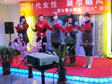 又是一年春来到,三月的大地,春风煦人面,瑞雪韵祥和。今年是国际劳动妇女节102周年。在“三.八”国际劳动妇女节来临之际,我校工会组织全体女教工以“颂时代女性,展巾帼风采”为主题,以诗文朗诵的形式度过了又一个属于自己的节日,又一次展示了我校全体女教师自尊、自信、自立、自强的精神风貌,与时俱进的创新理念和不断开拓进取的奋斗业绩。活动中,杨立英校长向老师们发表了热情洋溢节日贺词。诗文朗诵共分为:“柔”“美”“贤”“容”“爱”五个篇章。女教师们身着节日盛装,用自己的柔美、贤淑歌颂幸福人生;用自己的容达、博爱诠释教育的真谛。每一位男教师用一句话向女同胞们致以祝福并表示会以千分的关怀,万般的呵护与女教师们共同去描绘蒙小更加灿烂的明天。